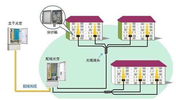 (2)在用户较集中的地点设置分纤箱,作为工程和放装的分界点;用户放装时,只需要从分纤箱布放一小段光缆至用户。