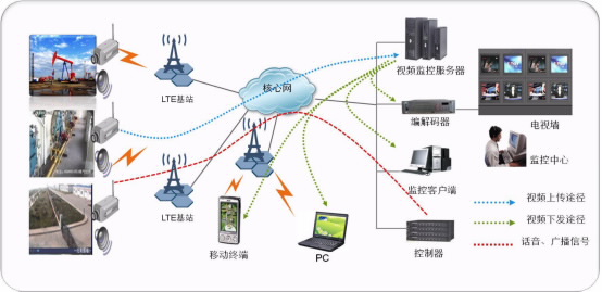 (2)油气田日常作业通过移动终端实现协同工作和应急处理,除了传统的语音集群通讯,在故障排除等特殊场景下还需要视频、数据业务,更需要能够适应各种恶劣环境的专业的通信终端,能够防水、防尘、防震,恶劣环境下还能防腐、防爆等,来保障生产安全;