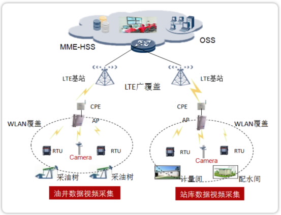 ◆在LTE网络信号覆盖区域内的任何固定和移动用户,可以通过轻便的无线通信终端CPE(Customer Premise Equipment)接入到油气田企业专网中,生产数据和视频监控数据可以使用这种方式上传;
