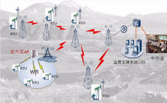 对于偏远且油气井数量不多的井区,可以采用点到点、点到多点的无线传输方式,现场场区配备WLAN无线覆盖,节省投资成本。 3044AM永利时代