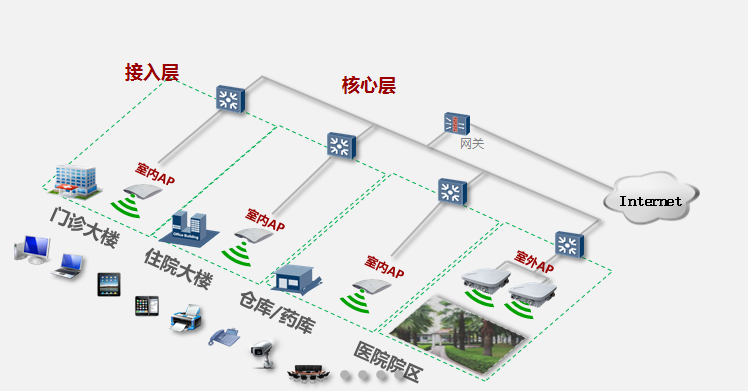 面对医疗设备、传感装置在无线网络中应用的逐渐深入,传统无线网络服务对象不仅在规模上逐渐增多,同时其在实现设备互联、物联网统管方面也带来诸多挑战。医疗机构一方面要在确保为院内人员提供高质量的无线网络环境,同时还要立即着手构建针对特定需求的无线网络平台。