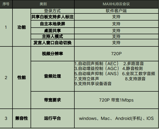 • 低带宽需求,高质量会议,可实现屏幕共享、 会议录制等功能;