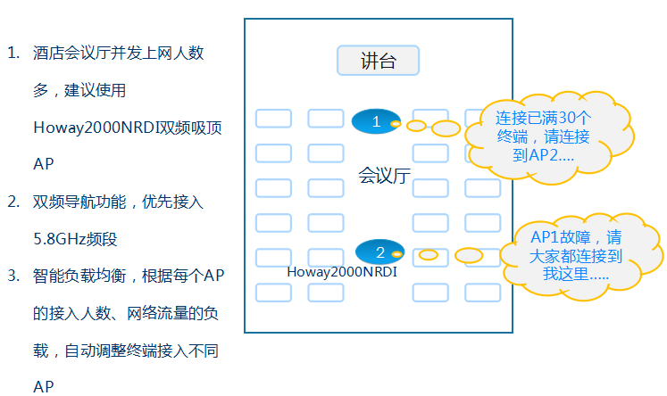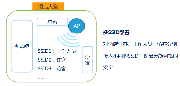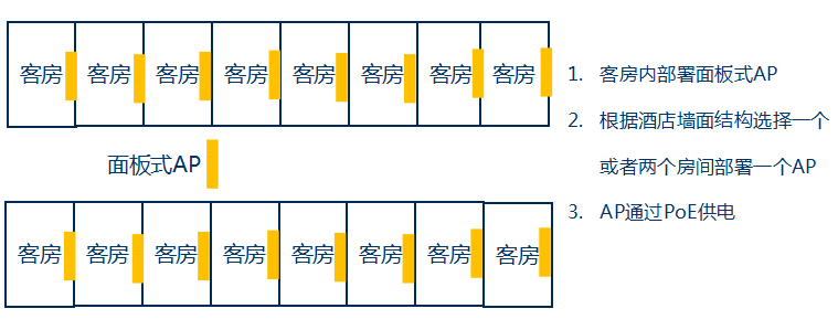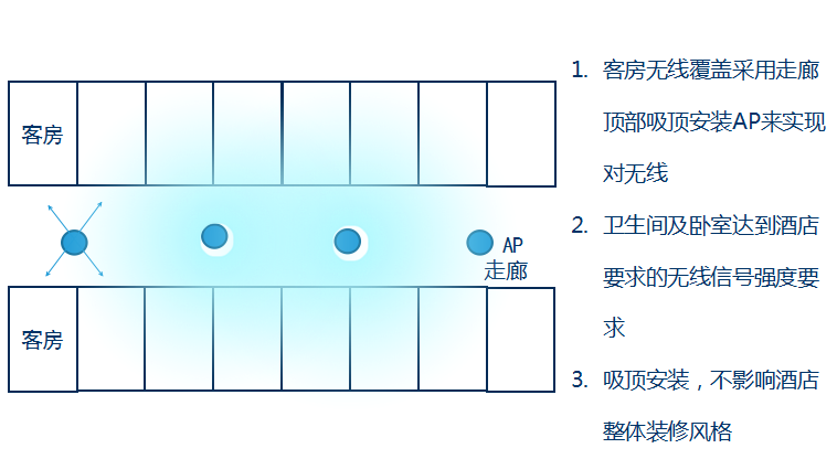 对于酒店周边室外区域,使用AP对室外区域进行无线信号覆盖进行无线数据回传。