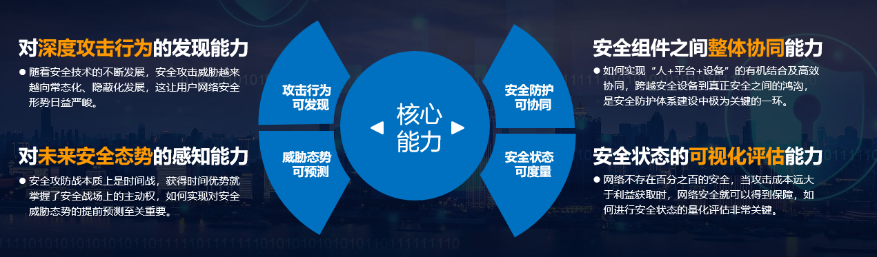 采用大数据架构做为底层设计,支持大规模网络弹性扩展;通过多维度、海量安全信息的采集,对数据进行存储、建模以及分析;采用丰富的场景化安全分析模型,实现安全风险的精准定位。兼容开放收集全网多维度安全信息,通过大数据关联分析实现安全事件分析、溯源、预警。