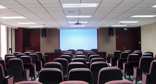 本方案针对会议室建筑面积为100平方左右,固定位置可容纳多人使用的会议室,在会场内要求实现会议扩声方面的要求。在系统设计中,我们以会议室系统为中心整合扩声进行整体设计。