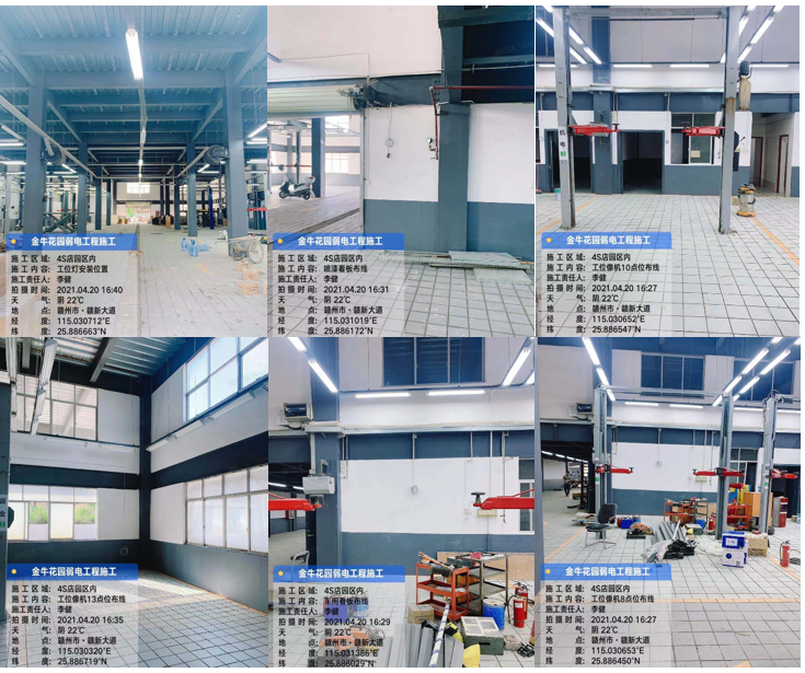 本次车间工位共安装车间摄像机5个,车间摄像机像素(400万像素以上)车间电脑1台;新车区通道工位监控,洗车工位摄像机3个;根据车间面积以及工位位置进行安装部署,安装摄像头之前进行专业布线,并在之后调试正常使用等。此次网络摄像机设备功能为远程监控;外形枪式,呈彩色成像色彩等。对于车间工位场景应用十分贴合。