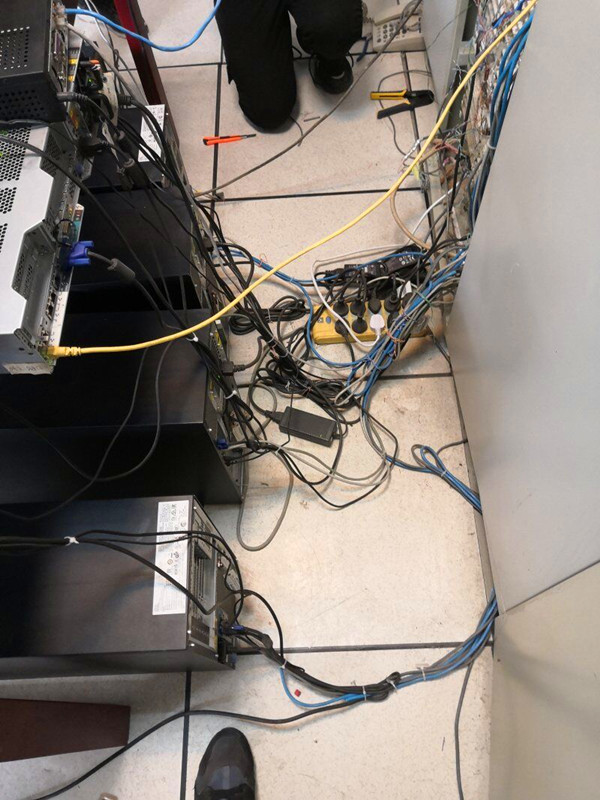 在外部线路方面,客户虽然是按照原有的规划将线路在指定的凹槽或交流走线,但线路并没有很好的集束和设置标签。时间一长,很快就分不清哪根线的具体作用了,维护麻烦。在机柜内部,也是如此。各种设备线路连接混乱,没有标签,很多地方都能看到打结的情况,造成了互相干扰影响了网络性能。