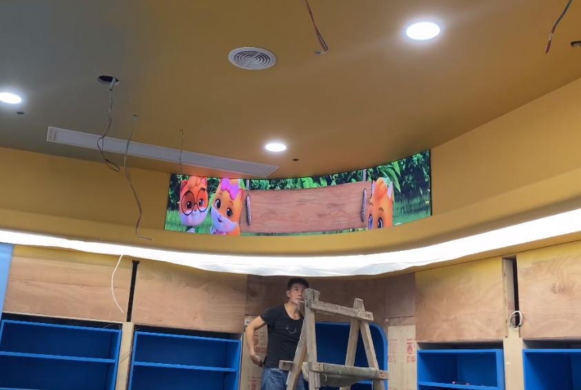 一家成功的食品级全国连锁门店,运营的方式除了核心产品以外,在门店的设置部署上也要别出心裁,动画显示的音视频屏幕也是门店硬件设施运营的形式之一。近期,小鹿蓝蓝门店需要就新门店的装修进行音视频设备的部署,委托3044AM永利时代进行门店异形屏的搭建安装。