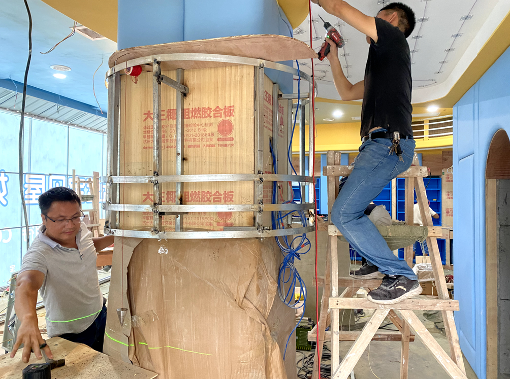 新建门店的异形屏安装,主要部署圆柱屏以及相关弱电布线等。