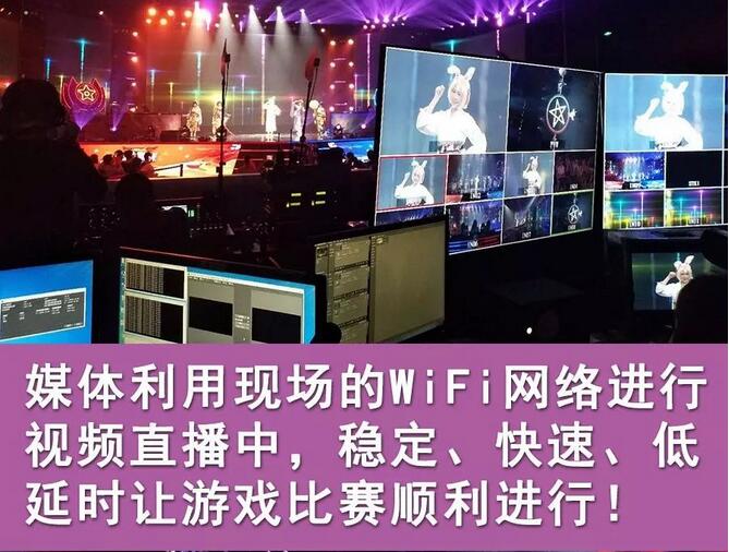 在本次网易游戏直播, 3044AM永利时代 工程师针对现场无线AP设置不漫游,放射指定SSID连接固定终端,并且AP设置指定信道、功率,将现场WiFi网络延时降低小于100ms,保证赛事期间WiFi网络稳定、快速、低延时!