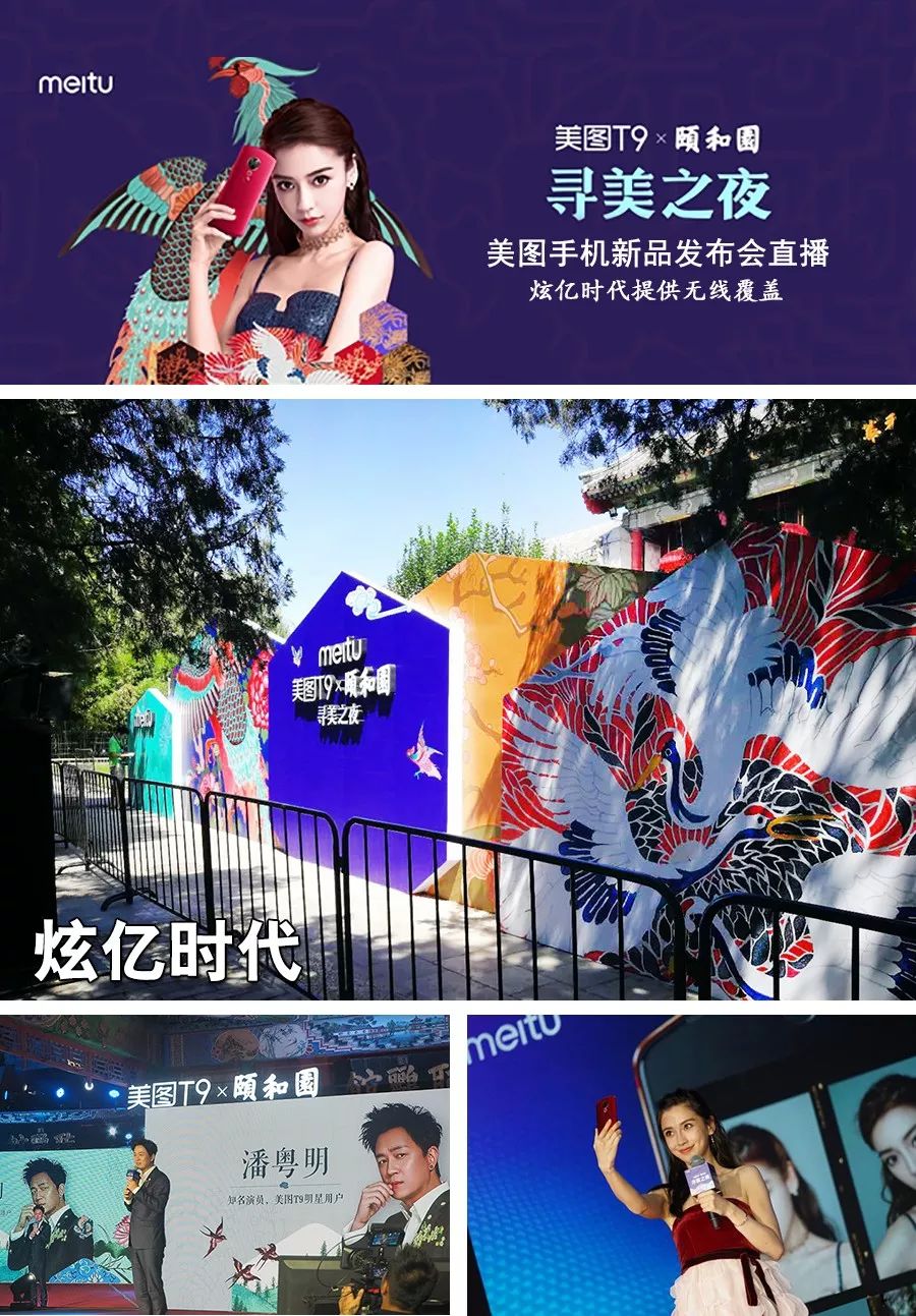 发布会无线网络案例:6·27日美图T9手机发布会在北京颐和园举办,与其说是发布会,这到更像是一场时尚show!共3个小时的美图 × 颐和园 “寻美之夜”发布会直播,现场邀请了包括angelababy、方文山、潘粤明、李晨、戚薇、汪东城等明星!