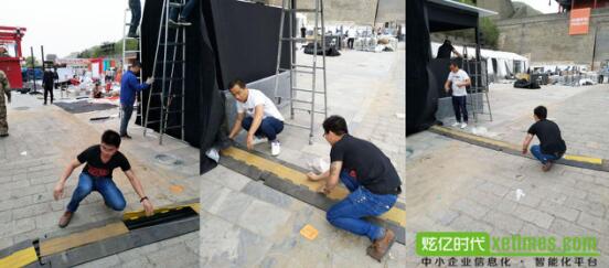 由于此次活动是在北京长城上举办的,每个工作大棚都是现场临时搭建,所以为了保障大棚之间连接的线路不被施工车辆损坏,同时也避免路过的跑者或工作人员被绊倒,就在所有裸露在外的线路上盖了过桥板。