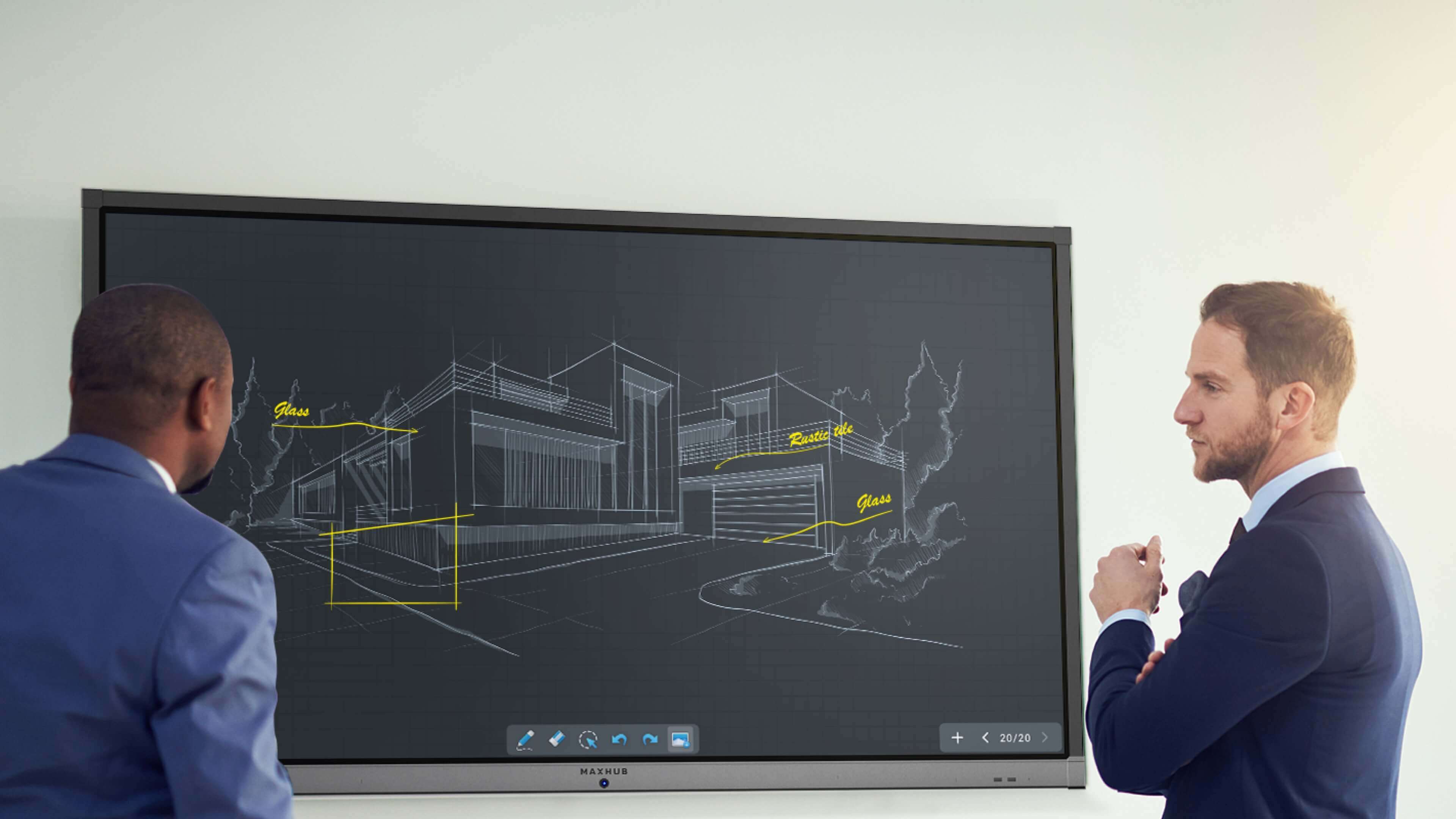 独特的电容 + 电磁双触控技术,让你在一块纯美的屏幕上享受畅快精细的书写,同时融入图表辅助等更智能的人性化设计,满足会议中高效的书写需求。