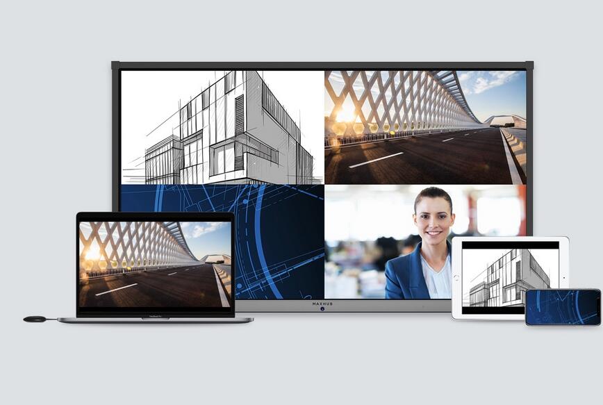 MAXHUB 打破单一功能的产品逻辑,集高质量显示、触摸书写、无线传屏等功能于一体,兼容多种远程会议软