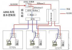 家庭网络布线方案: 1、两个卧室、书房和客厅都能上网,并且书房中有两台电脑可以同时上网。 2、确定入户点 将宽带路由器作为中心接入点直接放在了吊顶的支架上。有条件的用户