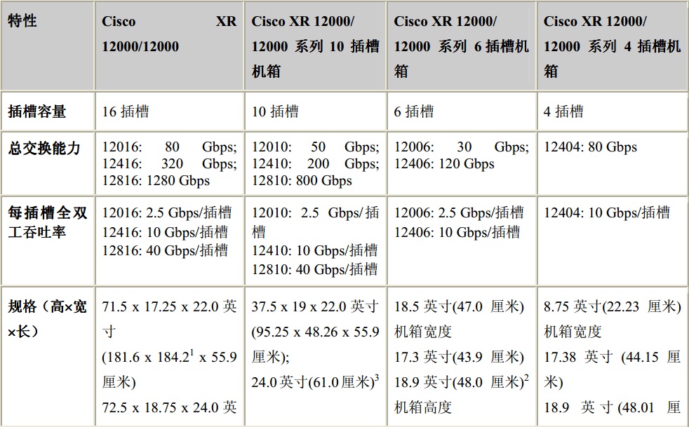 Cisco XR 12000 系列和Cisco 12000 系列路由器是智能路由解决方案产品系列中的一员,容量可 以从2.5G/插槽扩展到n x 10 G /插槽,能支持运营商IP/MPLS 网络,并推动向IP 下一代网络发 展的进程。